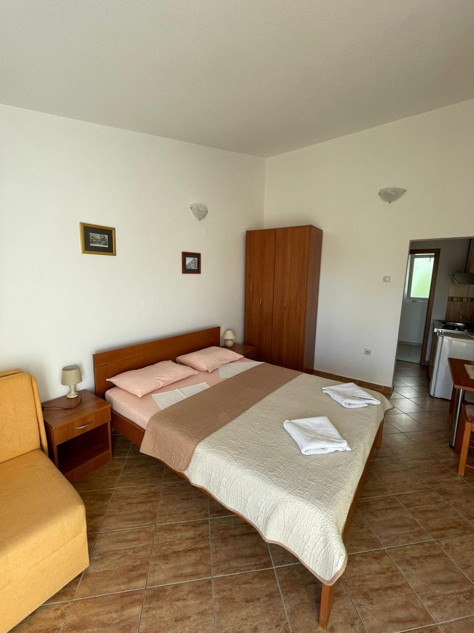 Kameralne studio na spokojne wakacje nad Adriatykiem Apartament 2 to jasne i przytulne studio wakacyjne w Czarnogórze, idealne dla 2–3 osób. Sprawdzi się świetnie na