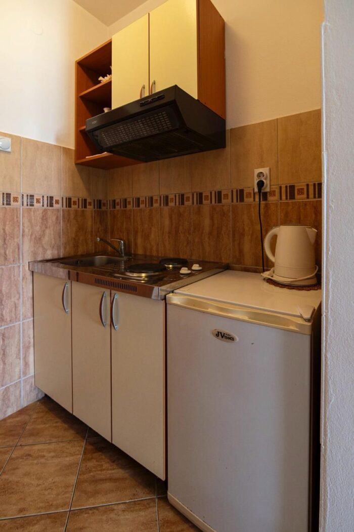 Aneks kuchenny wyposażony jest w kuchenkę i lodówkę, dzięki czemu bez problemu przygotujesz śniadanie, lekki obiad czy kolację po powrocie z plaży. To duży atut przy dłuższym pobycie nad morzem oraz przy wyjazdach poza sezonem.