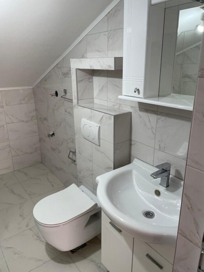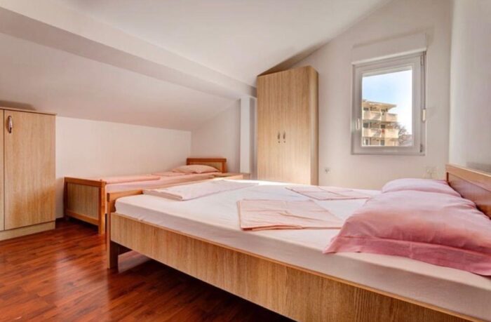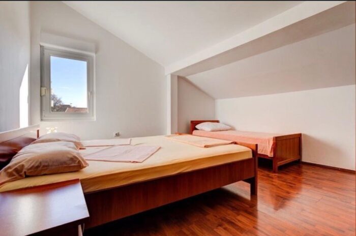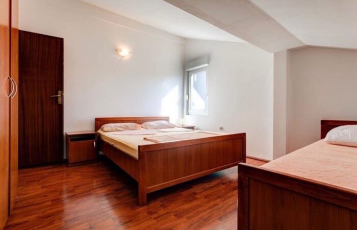 Apartament oferuje wyraźnie wydzielone miejsca do spania i wypoczynku, dzięki czemu nawet przy pełnym obłożeniu każdy ma tu swoją przestrzeń. To rozwiązanie, które dobrze sprawdza się przy noclegu w Czarnogórze dla większej rodziny lub grupy znajomych.