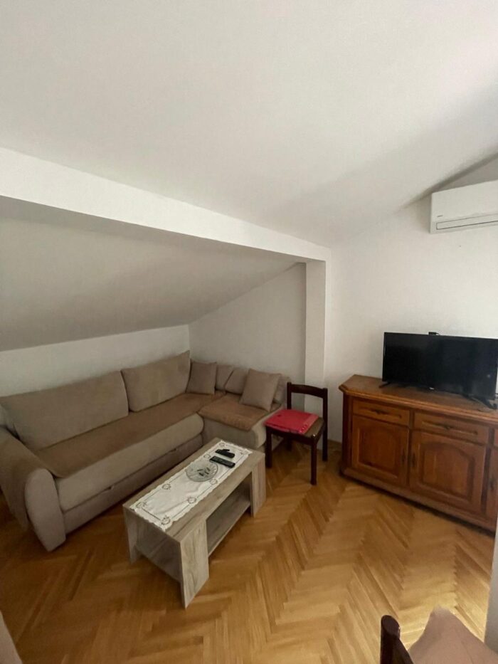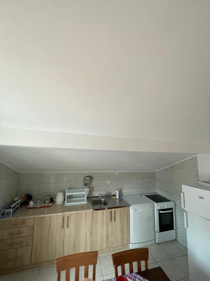 Apartament posiada kuchnię z kuchenką i lodówką, umożliwiającą przygotowywanie posiłków na miejscu. To duże udogodnienie przy wakacyjnym wynajmie w Czarnogórze, szczególnie przy pobytach kilkudniowych i dłuższych.