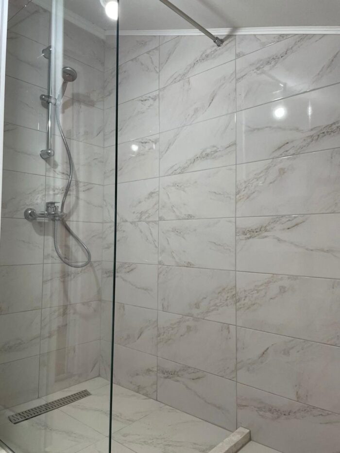 Łazienka jest przestronna i funkcjonalna, z prysznicem oraz pralką, co znacznie ułatwia codzienne życie przy apartamencie na dłuższy pobyt nad morzem lub wynajmie poza sezonem.